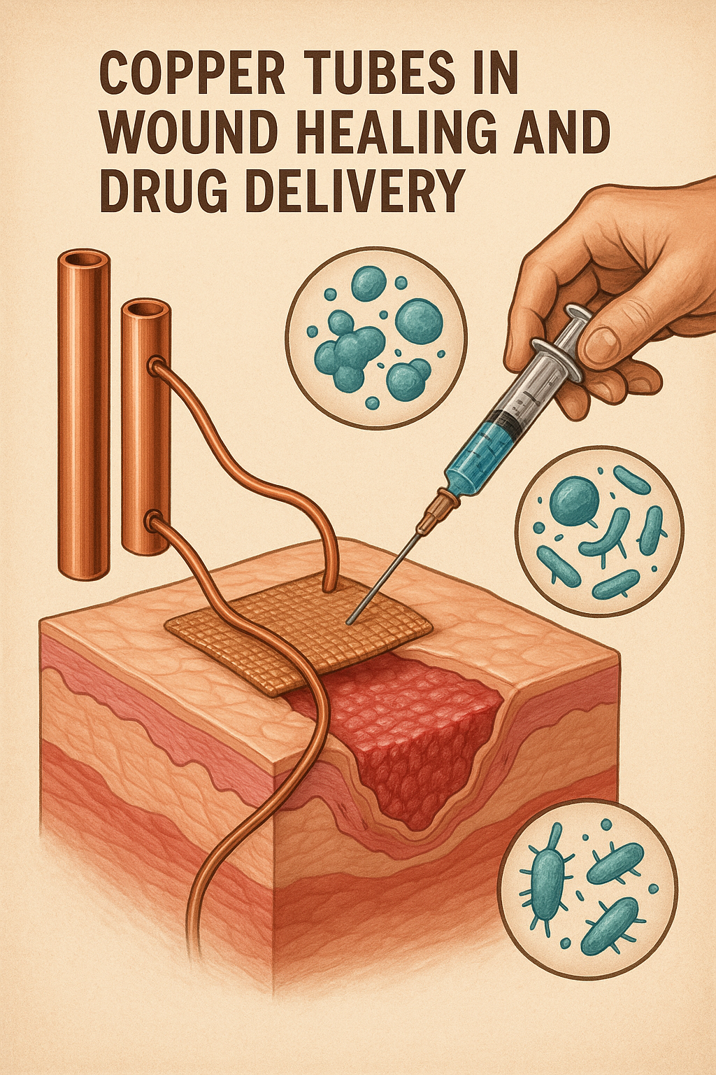 | Hojení ran a podávání léků | Měděné hadičky jsou začleněny do obvazů napuštěných mědí pro hojení chronických ran a lokalizované podávání léků. | Ionty mědi podporují regeneraci tkání a zabraňují infekci, urychlují proces hojení. |