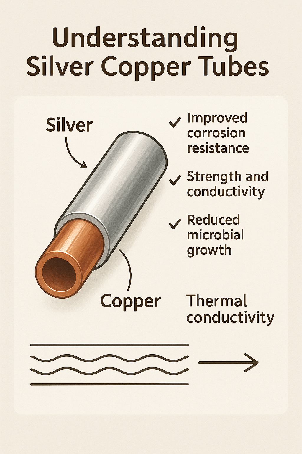 Stříbrné měděné trubky jsou typicky měděné trubky obohacené malým procentem stříbro buď legováním nebo povrchovou úpravou. Tento přídavek zlepšuje několik inherentních vlastností mědi, aniž by byly ohroženy její dobře známé výhody. Měď je dlouhodobě ve stavebnictví ceněna pro svou vynikající tepelná vodivost , tvarovatelnost a resistance to many forms of corrosion. The inclusion of silver further enhances these characteristics, particularly in environments where vlhkost , chemikálie nebo kolísání teploty může urychlit degradaci materiálu.