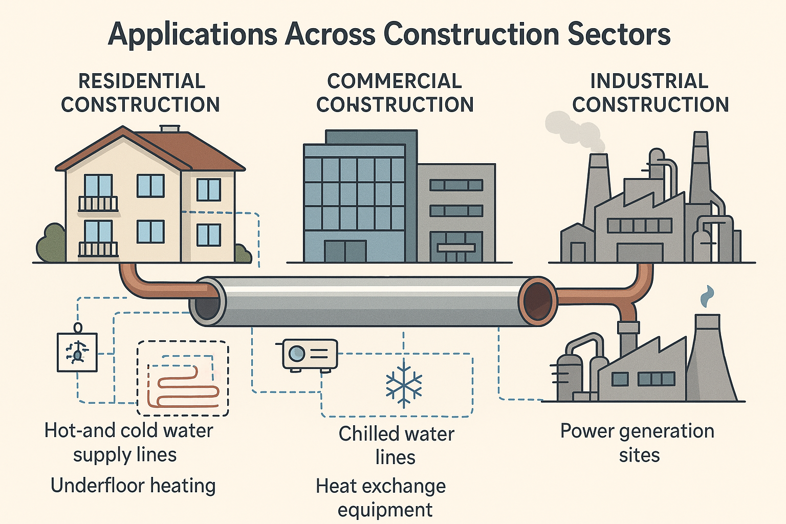 Všestrannost stříbro copper tubes jsou vhodné pro širokou škálu stavební aplikace . In bytovou výstavbu , běžně se používají v rozvody teplé a studené vody , topné systémy a sítě podlahového vytápění . Jejich odolnost pomáhá snižovat riziko netěsností a poruch souvisejících s korozí, což je zvláště důležité v bytové domy s více jednotkami .