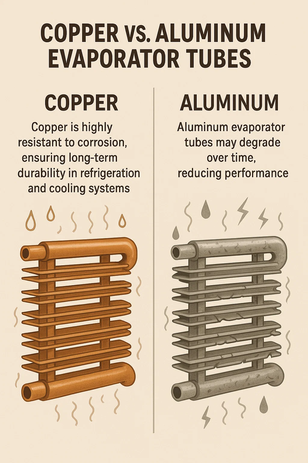 Pro průmyslové a komerční aplikace , kde jsou spolehlivost a dlouhá životnost rozhodující, odolnost mědi vůči korozi a její schopnost zachovat strukturální integritu z ní činí vynikající volbu pro trubice výparníku.