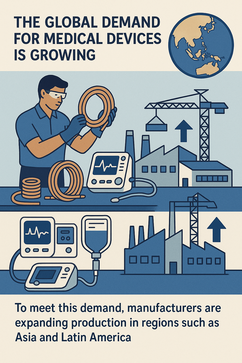 Někteří výrobci zakládají nová výrobní zařízení v regionech s rostoucími trhy zdravotní péče, jako je Asie a Latinská Amerika, kde mohou zásobovat místní trhy efektivněji a levněji. Tato regionální expanze také umožňuje výrobcům lépe uspokojovat potřeby různých lékařských trhů a orientovat se v regulačním prostředí v různých zemích.