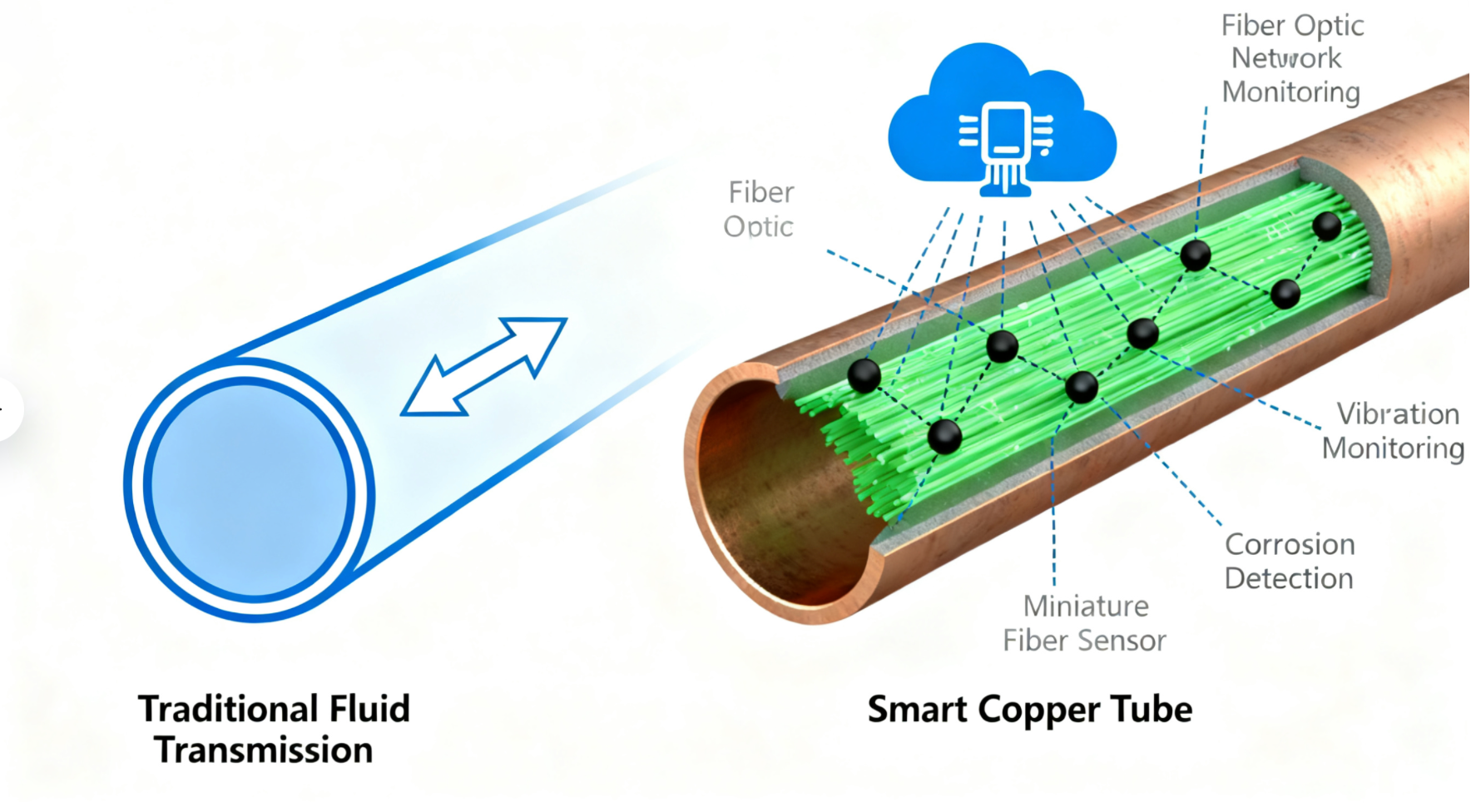 (Titulek: Od pasivní trubky k aktivnímu senzoru: Zásadní evoluce role měděné trubky, od pouhého vodiče látek ke generátoru a vysílači provozní inteligence.)