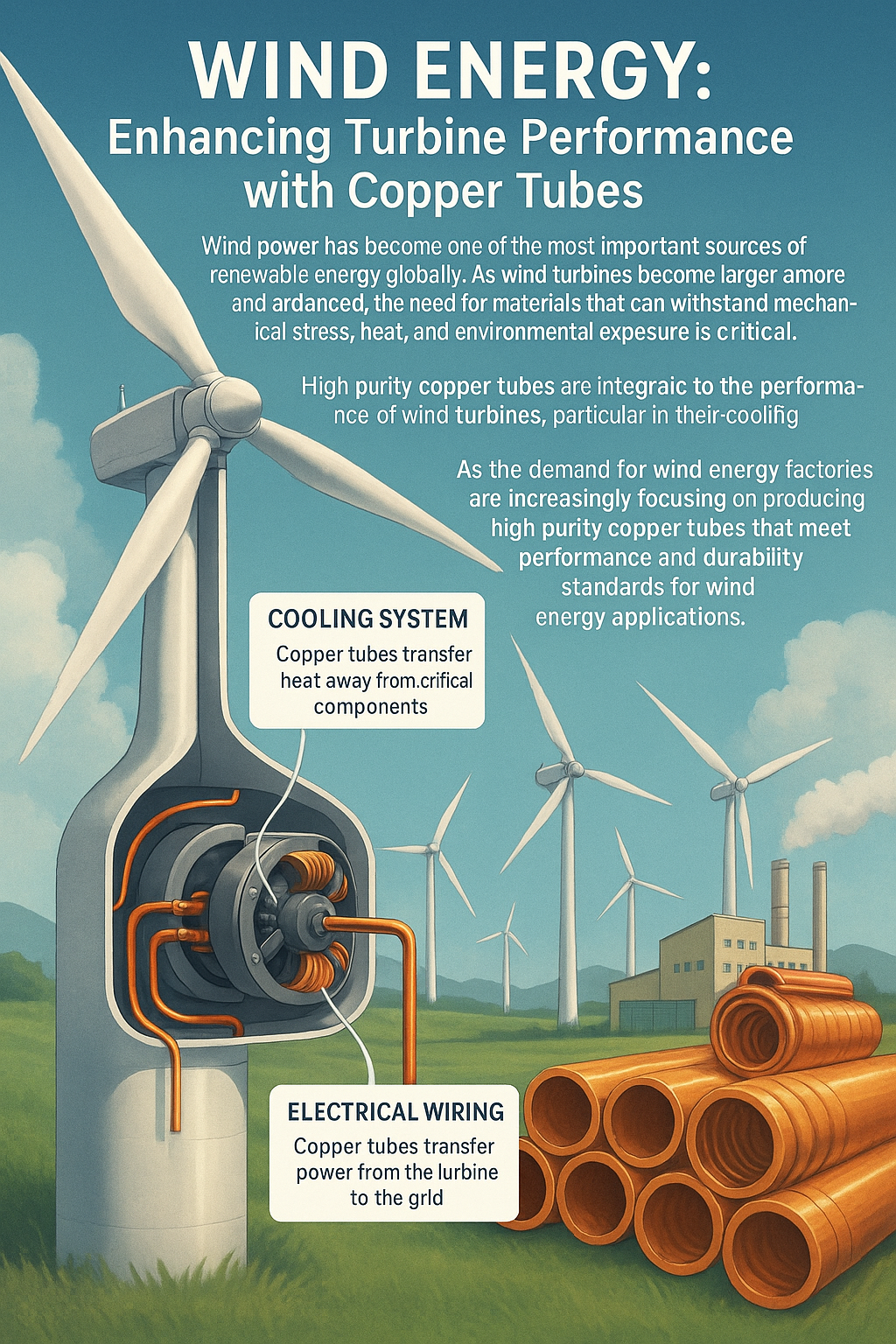 Jak roste poptávka po větrné energii, továrny na měděné trubky se stále více zaměřují na výrobu měděné trubky vysoké čistoty které splňují standardy výkonu a životnosti požadované pro aplikace větrné energie.